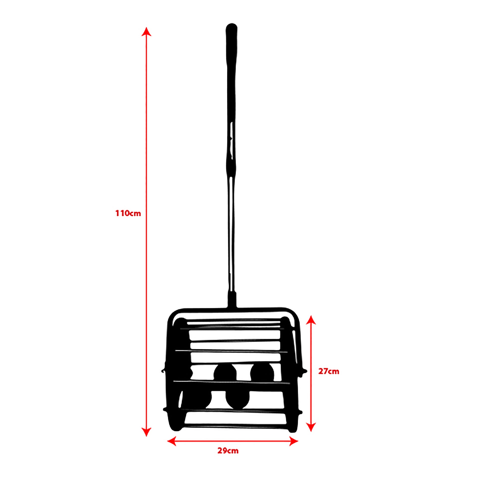 Rueda para recoger cualquier tipo de pelotas de tenis/pádel. Fácil y cómodo de utilizar. Cuenta con mango extensible. Altura máxima: 110cm. Altura mínima: 33,5cm. Diámetro de la rueda: 27cm. Ancho de la cesta: 29 cm. Medidas: 27x29x110cm. Packaging medidas: 36x36x30cm. Peso: 2kg.